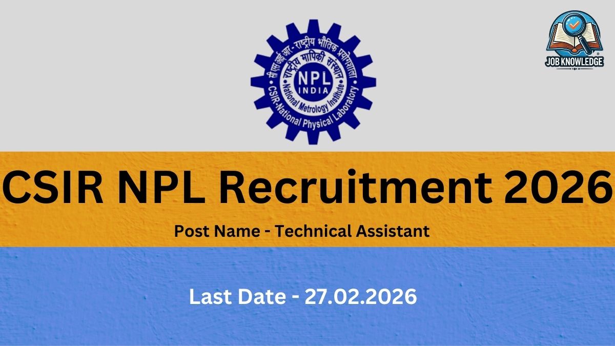 CSIR NPL Recruitment 2026 :- CSIR NPL is now open for applications. The Council of Scientific & Industrial Research (CSIR) – National Physical Laboratory (NPL), New Delhi, India’s premier National Metrology Institute, invites online applications from enthusiastic and qualified young Indian citizens for the post of Technical Assistant. This recruitment drive aims to fill a total of 18 vacancies across … Read more