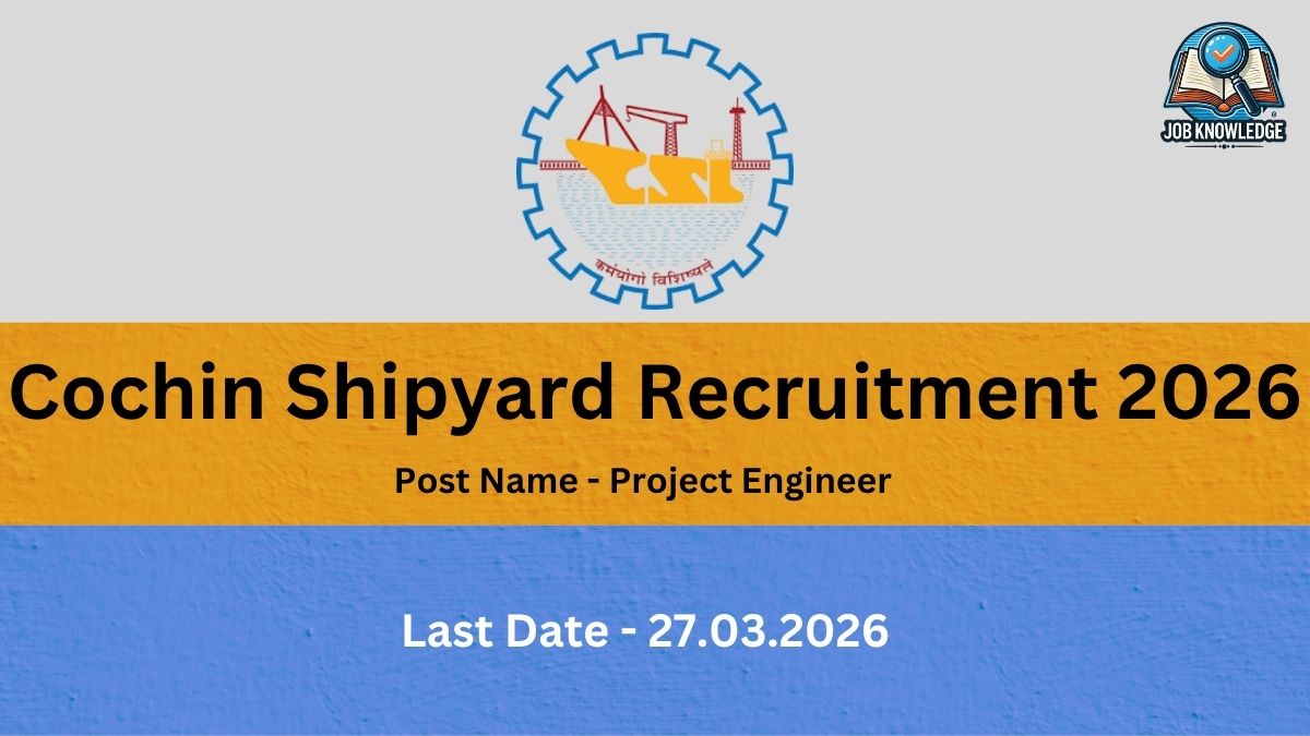 Cochin Shipyard Recruitment 2026 :- Cochin Shipyard is now open for applications. Cochin Shipyard Limited (CSL), a listed premier Miniratna Schedule ‘A’ Company under the Government of India, has released Vacancy Notification Ref. No. CSL/P&A/RECTT/CONTRACT/PA (Logistics)/2024/9 dated 09 March 2026 inviting online applications from eligible Indian citizens for the position of Project Assistant (Logistics) on a contract basis. This is an excellent opportunity for candidates with experience in customs clearance and logistics to join one of India’s leading shipbuilding and maintenance organizations at its Kochi location.