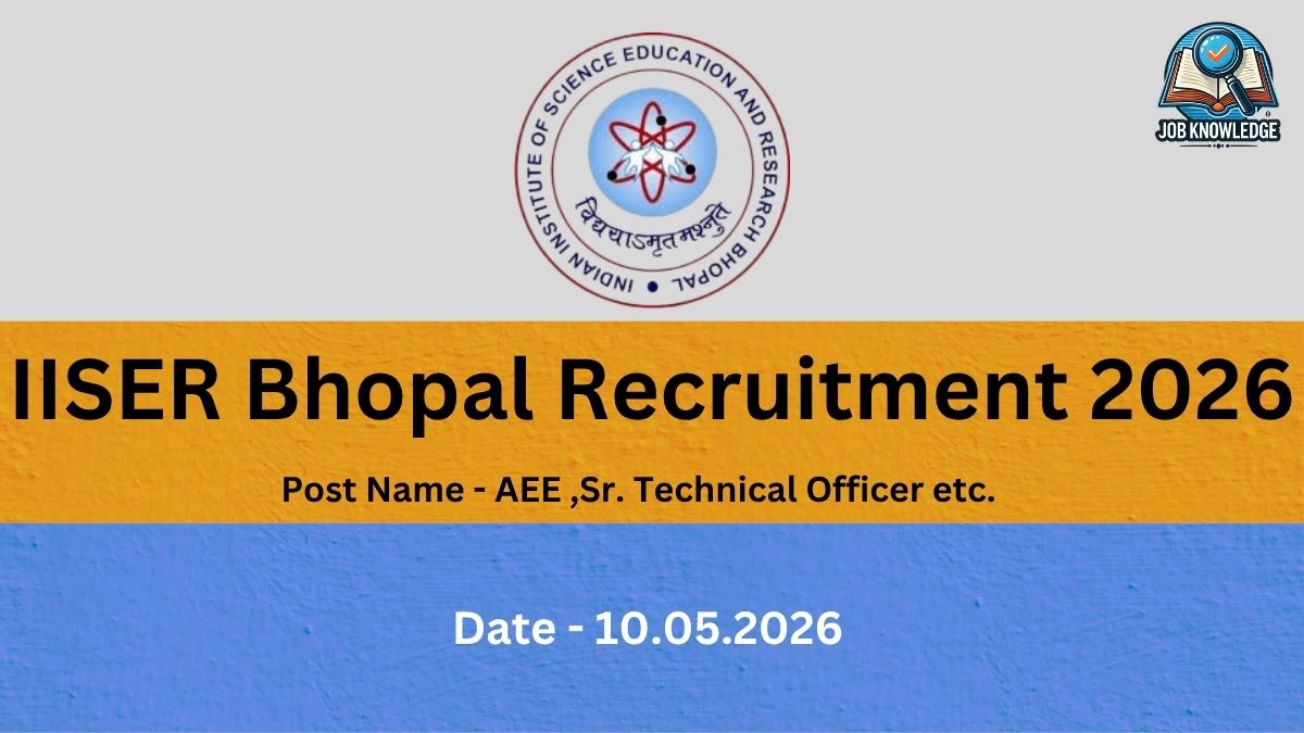 For IISER Bhopal Recruitment 2026, the age limit is 50 years for Principal Technical Officer, Sr. Technical Officer, and Executive Engineer, and 40 years for Assistant Executive Engineer (as on May 10, 2026). Age relaxation is available for PwBD, Ex-Servicemen, Central/State Govt. employees (5 years with min. 3 years service), and Institute’s regular employees (no upper age limit with min. 3 years service). SC/ST/OBC(NCL) candidates applying against UR posts are not eligible for age relaxation.