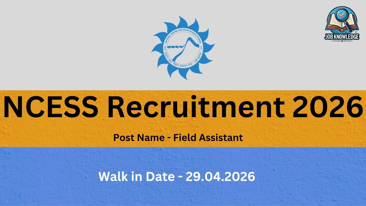 | NCESS Recruitment 2026 :- NCESS presents a unique opportunity for geology graduates to join the National Centre for Earth Science Studies (NCESS), an autonomous research institute under the Ministry of Earth Sciences, Government of India. NCESS is a premier centre dedicated to earth science research, located in Thiruvananthapuram, Kerala. The centre is conducting a walk-in-interview for the position of Field Assistant on a contract basis for a period of six months. This position offers a chance to work in the challenging and scenic Garhwal Himalayas, involving field visits for the collection of primary and secondary hydrogeological data. Interested candidates who meet the eligibility criteria, including educational qualifications and age limits, are encouraged to appear for the walk-in-interview with all necessary documents. The position is temporary, and the remuneration is ₹20,000 per month plus applicable HRA. |
