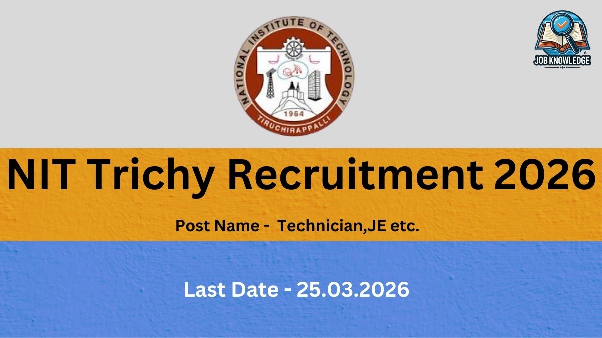 | NIT Trichy Recruitment 2026 :- NIT Trichy is now open for applications. The National Institute of Technology Tiruchirappalli (NIT Trichy) has released Advertisement No. NITT/R/RC/NT/2026/04 for the recruitment of Technical Assistant, Junior Engineer, and Library and Information Assistant positions. This recruitment drive invites online applications from eligible Indian nationals for a total of 09 vacancies across various engineering disciplines and library services. The positions offer placement in Pay Level 6 (₹35,400 – ₹1,12,400) under the 7th CPC Pay Matrix, with opportunities for specialization in specific departments. |